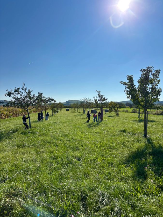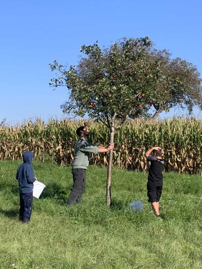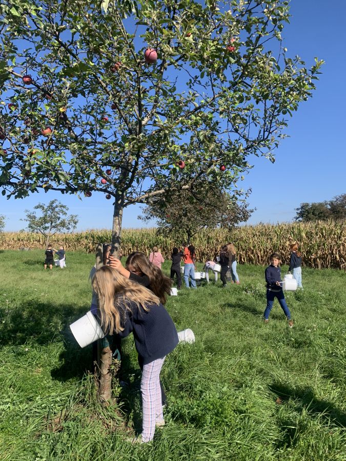 Deshalb trafen sich einige Kinder der 3. +4. Klasse un deren Mamas am Donnerstag, 2. Oktober 2025, zum Äpfelsammeln.