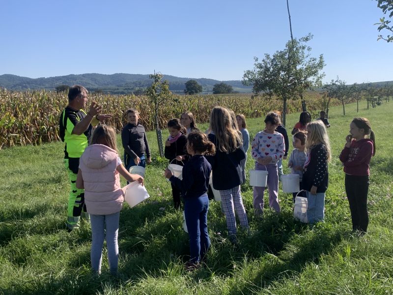 Christian vom Bauhof hat dieses Jahr wieder die Apfelsammelaktion mit der Schule organisiert.