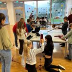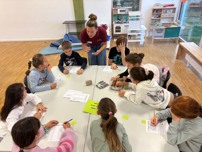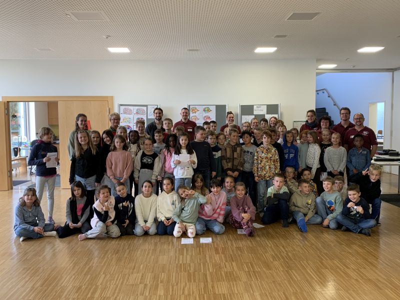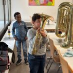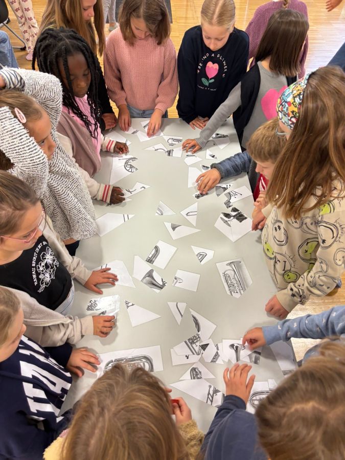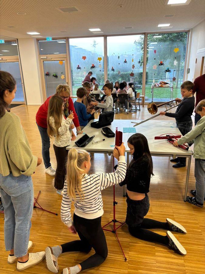 Nach der Vorführung durften die 3. und 4. Klässler viele Instrumente ausporobieren und kennerlernen, hören, wie sie klingen