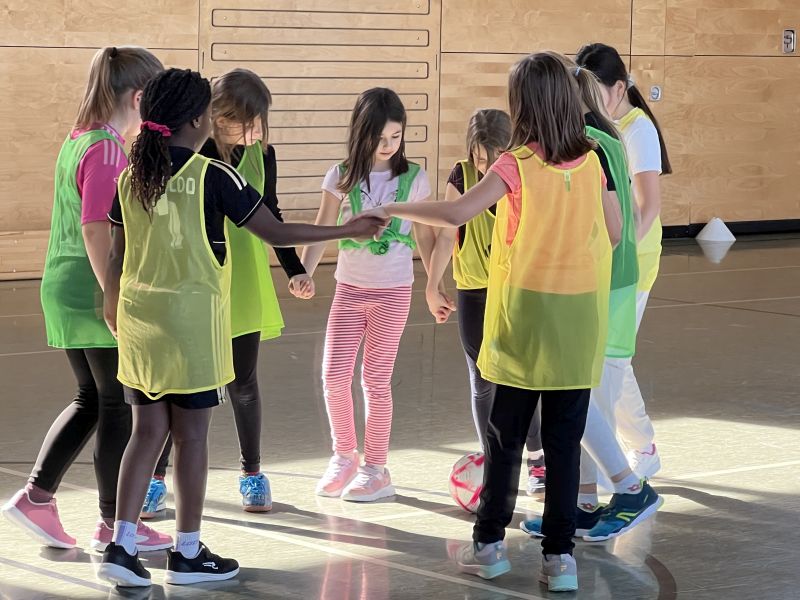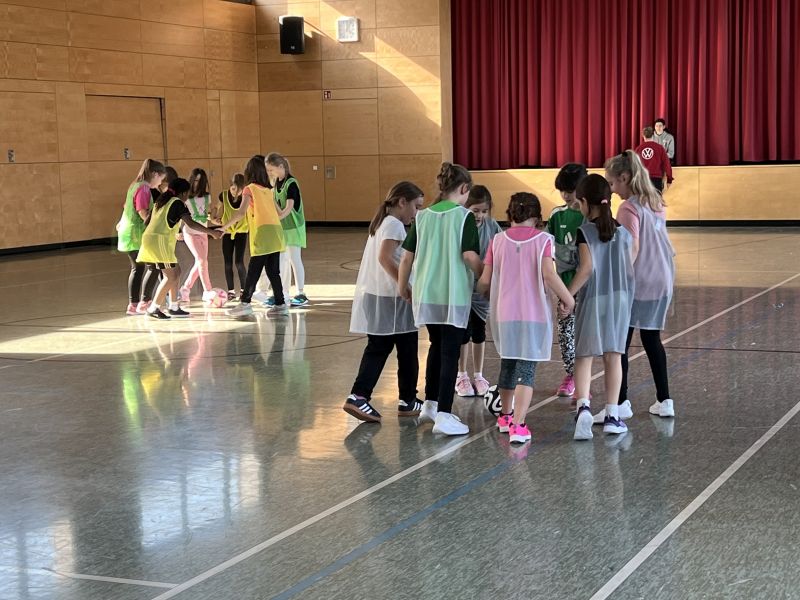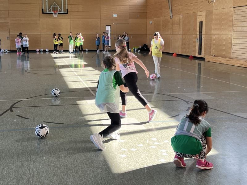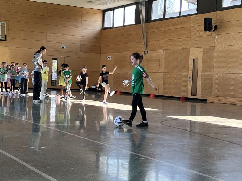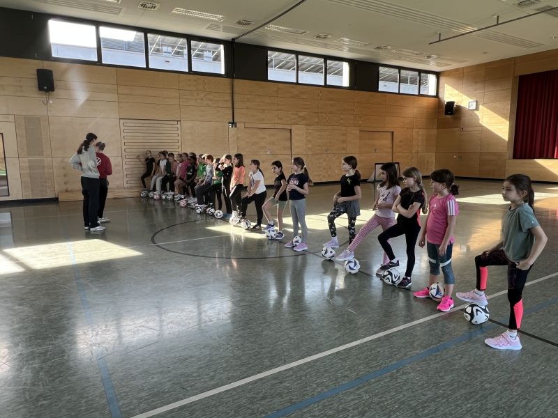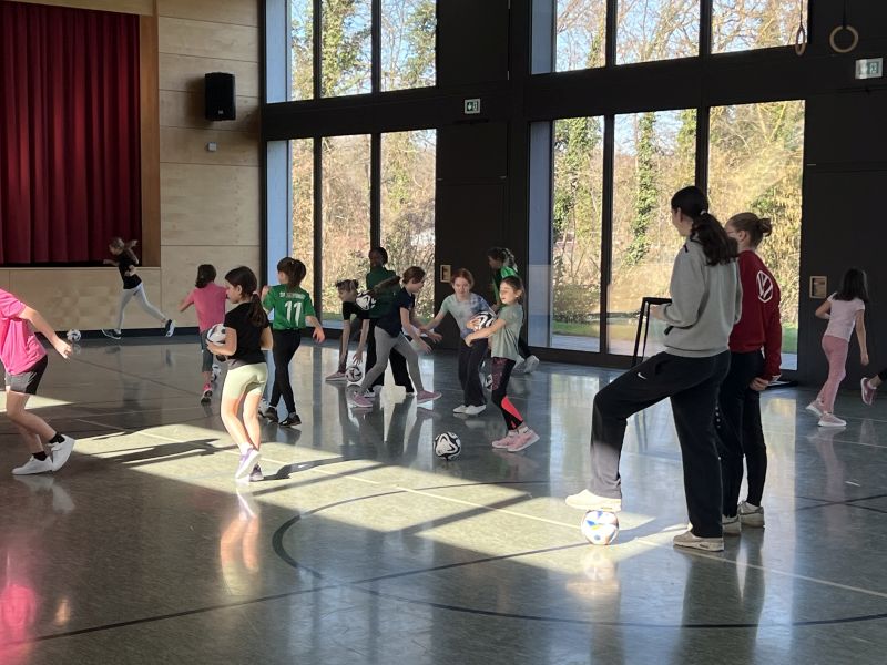 Am 26. Februar 2026 war ein Team der Fußballdamen des SC Freiburg bei uns. Die Mädchen der Klassen 3+4 durften an einem Probetraining teilnehmen.